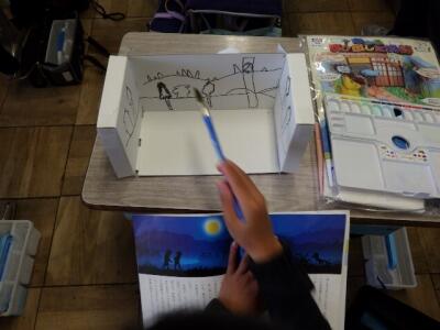 背景と登場人物を組み合わせて立体的に表現していきます。