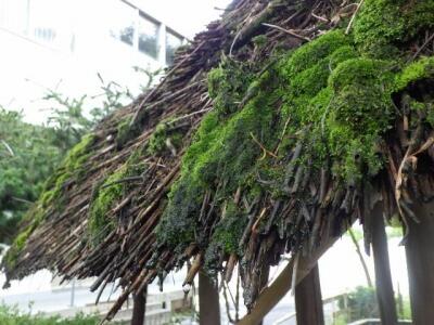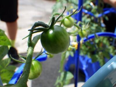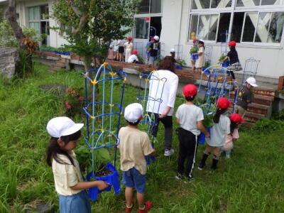 アサガオが大きくなってきたので、鉢に支柱を立てました。