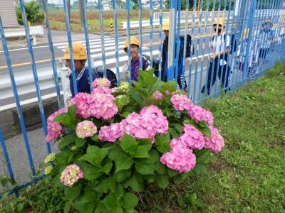 写真を撮っていると、1年生が顔を出してあいさつしてくれました。