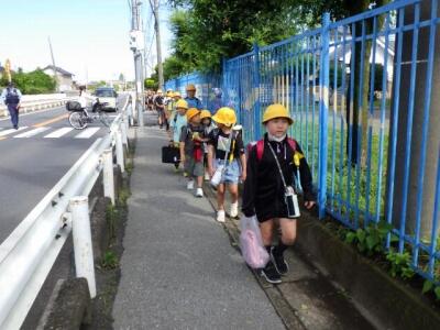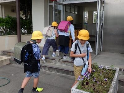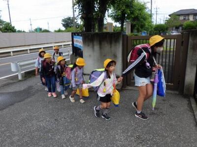 今日は傘を持っていないので、子どもたちの足取りも軽やかです。