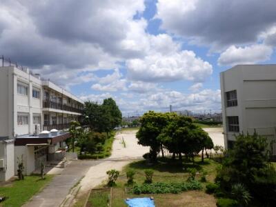 水はけのよい豊野小学校の校庭。1時間目から体育の授業ができます。