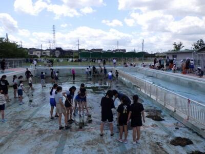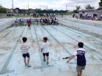 プールそうじは、毎年この時期に6年生と5年生が行っています。