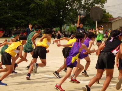 両校の合同チームで、リレーや玉入れなどのミニ運動会を楽しみました。