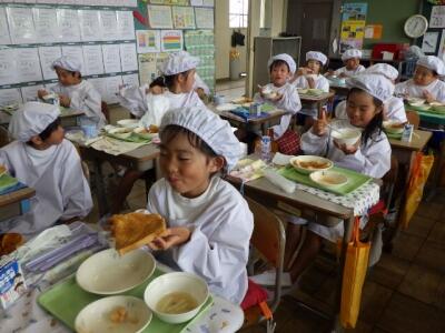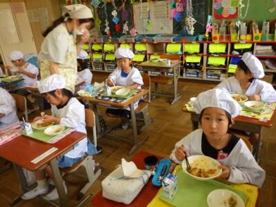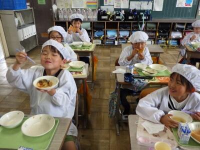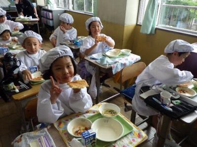 バスで学校に戻りお弁当を食べた後、校庭で記念撮影を行いました。