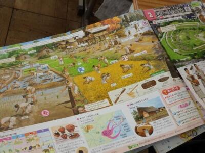 今日はクレヨンで人や生きもの、植物などを描き足しました。