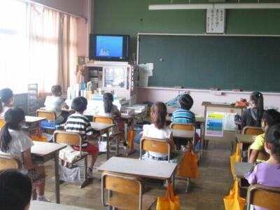 前の写真から約1年後、令和2年7月29日の4年生の授業の様子です。