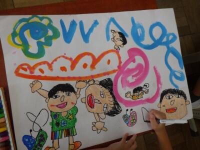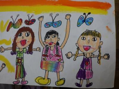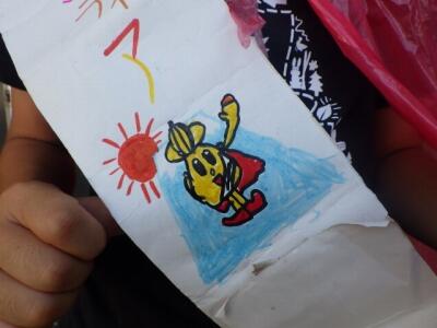 よく見ると、まことちゃん(ギャグまんが)の「サバラ」をしている子もいます。