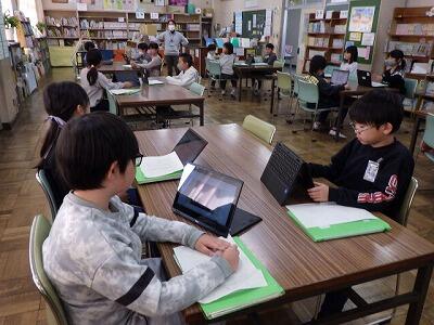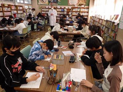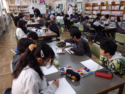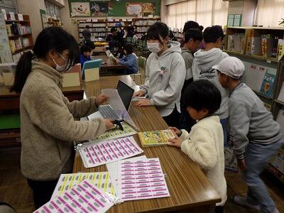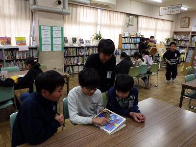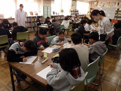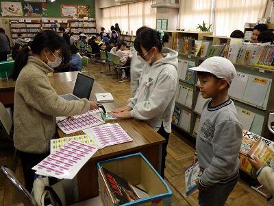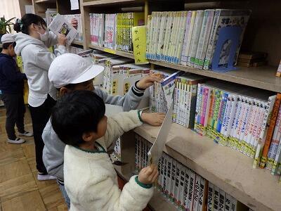 今日は校庭で遊べないこともあり、図書室はにぎわっていました。