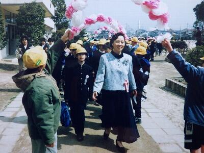 あれから5年。手を振っている1年生たちは3日後に卒業します。