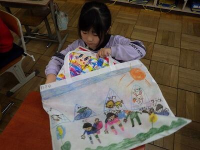 1年生のランドセルカバーは黄色。クレヨンしんちゃんの絵ではありませんでした。