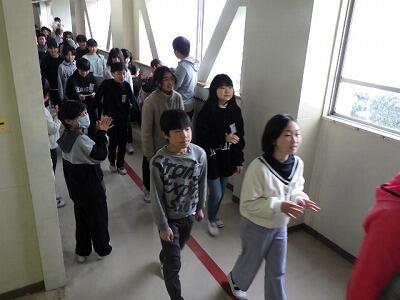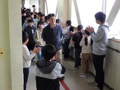 6年生が校舎の1階と2階を歩いて下級生とお別れをしました。