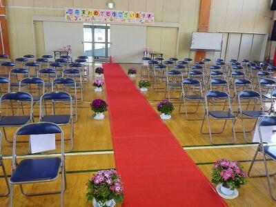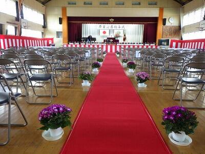 卒業生は、この赤い絨毯の上をゆっくり歩いて入場します。