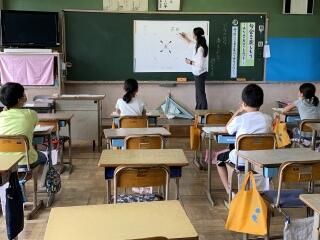 豊野小を去られた先生の懐かしい笑顔に、豊野っ子も笑顔で応えていました。