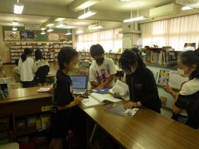 報告文を書くために、図書室で資料収集をしています。