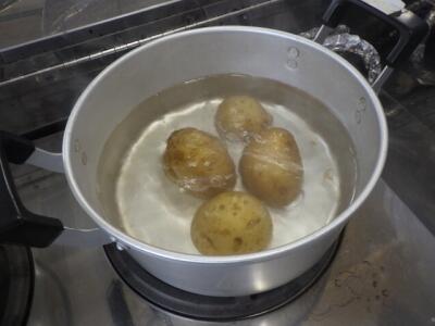 卵といもをゆでていました。