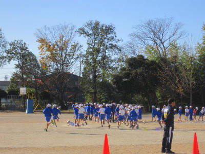 寒い朝ですが、校庭では子供たちが元気に運動しています。
