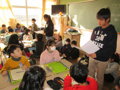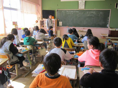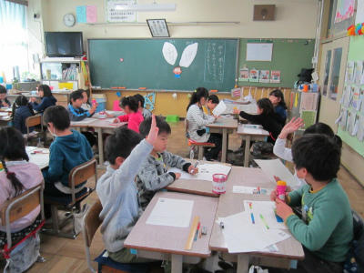 4月から始まる中学校生活に向けて、子供たちは楽しそうに授業を受けました。