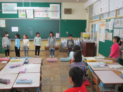 3年・みんなの前で発表は、緊張します。