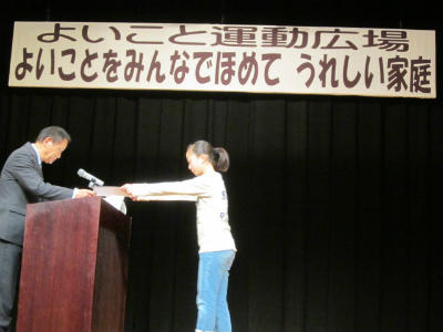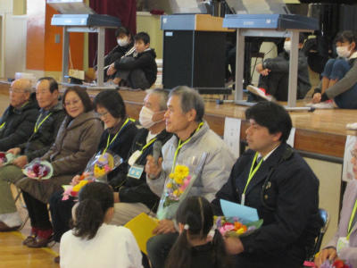 教育長のお話の後、オープニングで豊野小学校6年生が、作文を発表しました。「みんなで気持ちよく過ごすために」、自分のできることを自分なりにしていくという話に、会場は大きな拍手で包まれました。