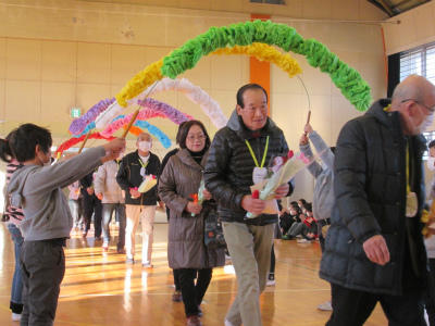体育館の中を行進です。