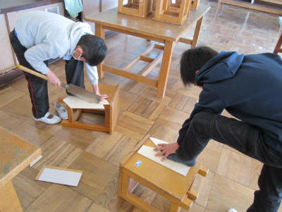 大きな音が出るため、休み時間に作業していただきました。