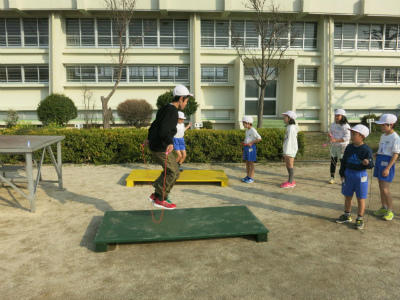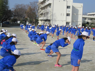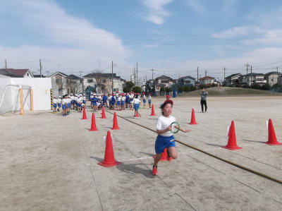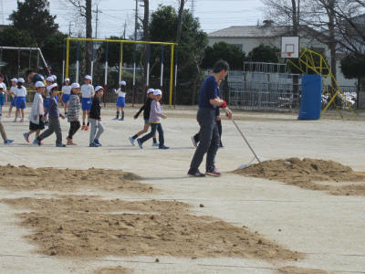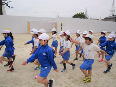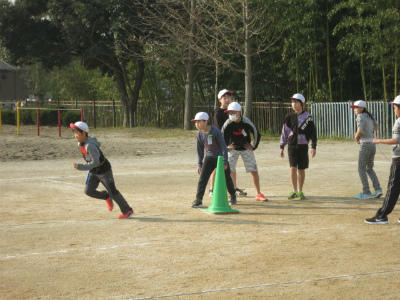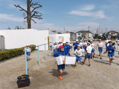 この後、3年生に鬼ごっこに誘われ、一緒に遊びました。「疲れた~。」