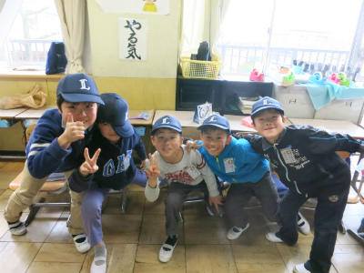 新聞等でご存じの方もいると思いますが、本日ライオンズから埼玉県内の小学生に配られた帽子を全児童に配りました。