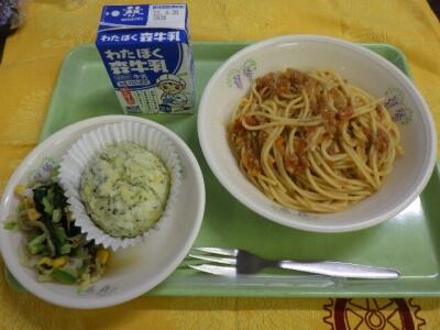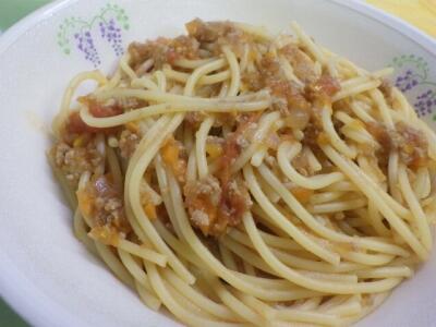 春日部市産のトマトを使ったボロネーゼ風パスタです。