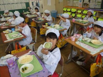 地場産給食とは、その地域でとれたものを使った給食のことです。