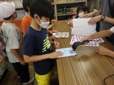図書委員の児童が、バーコードで貸出の手続きをしてくれました。