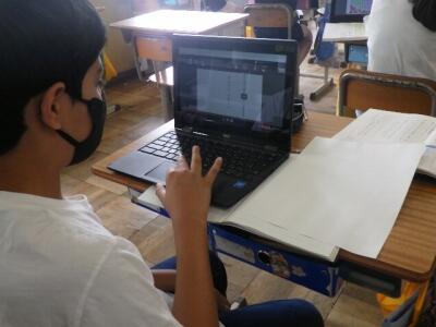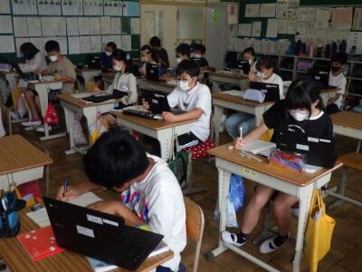 自分の考えを、それぞれのクロームブックに書き込みます。