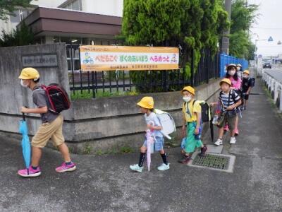 豊野駐在所の富田さんと庄和駐在所の方をお招きし、ミニ交通安全教室を開催しました。