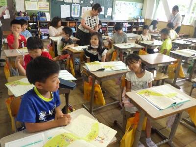 たんぽぽ学級の児童が、牛島小学校を会場に行われた合同学習会に参加しました。