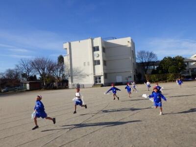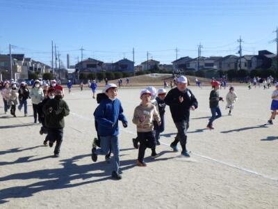 校庭がぬかるんでいたので、少しコースを変更しながら走りました。
