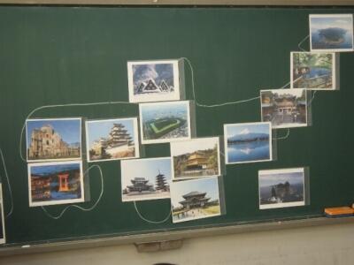 世界遺産の名称、所在地、地方区分、位置などを英語で確認していきます。