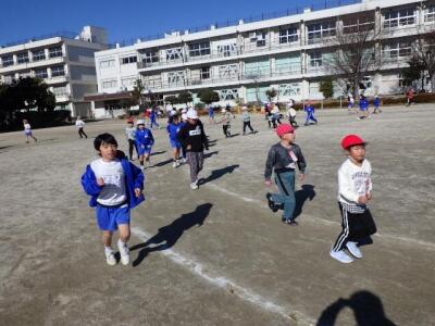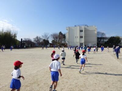 2月15日の記録会に向けて、業間休みの練習が始まりました。