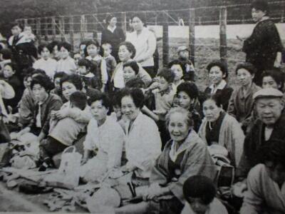 男子と女子がペアで座り、男子の髪型は丸刈りが主流でした。