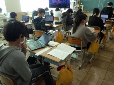 家庭科で、暖かく快適に生活するための条件について学習しています。