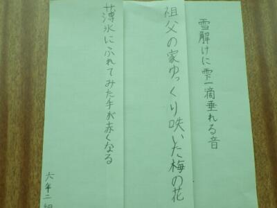 クラス全体から選ばれた2つの句を、幸松公民館で展示していただくことになっています。