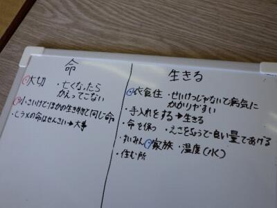 「命」と「生きる」という2つの観点でグループごとに話合いをしました。