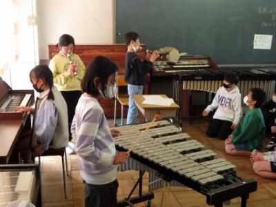 退場時の5年生の演奏は、リコーダーに加え、鉄琴やオルガンも使っていました。