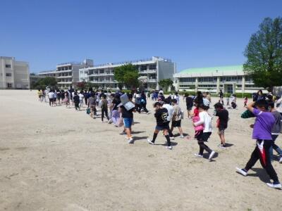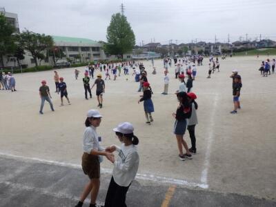 青空は広がりませんでしたが、全校児童が校庭に出てきました。