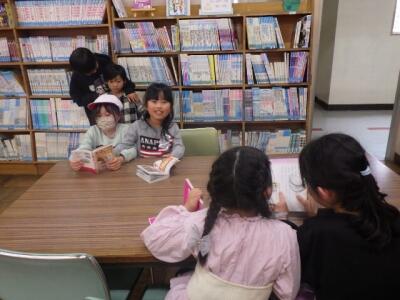 今日は雨で外遊びができなかったこともあり、図書室は大盛況でした。