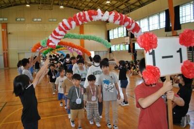 体育館に1年生から6年生までがそろうのは、これが初めてです。