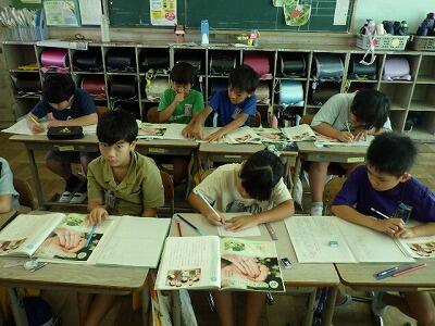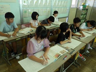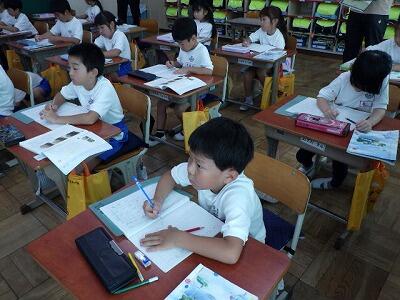 4月にはひらがなの練習をしていた1年生。今では簡単な説明文が読めるようになりました。。