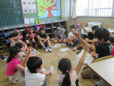 今日の業前のなかよしグループ活動では、今度行われるグループ遊びの内容について話し合いました。みんなが喜んでくれるような遊びについていろいろ意見を出し合いました。今度の集会が楽しみです。