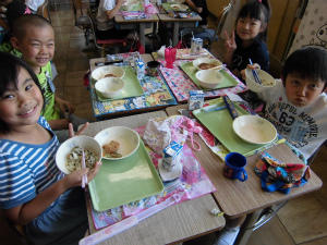 今日は、2年生とたんぽぽ学級の子どもたちが、グリンピースのさやむき体験をしました。さやから鮮やかな緑色のグリンピースがたくさん出てきました。子どもたちが一生懸命むいた、グリンピースは給食の「グリンピース入りわかめご飯」となってでてきました。とてもおいしいご飯ありがとうございました。