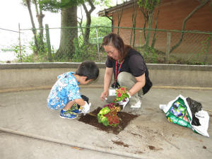 今日も、花壇づくりボランティアの方に来ていただき、花の植え替えをして頂きました。前回チューリップの球根を取り、整備した花壇に、サルビアや、ポーチュラカの苗を植えてくださいました。まだ、小さな苗ですが、委員会の子どもたちが、水やりをして世話をしてくれるので、夏にはきれいな花を咲かせてくれると思います。正門前が花いっぱいになる様子が目に浮かびます。花壇づくりボランティアの皆様、ありがとうございました。