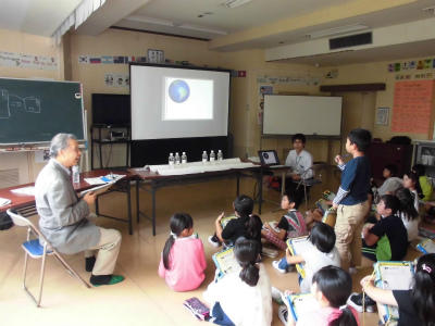 川の水等の水質の違いなどを教えていただいたり、質問に答えたりと、子供たちは充実した時間を過ごすことができました。学んだことを生かし、環境についてさらに関心を深められることを期待しています。