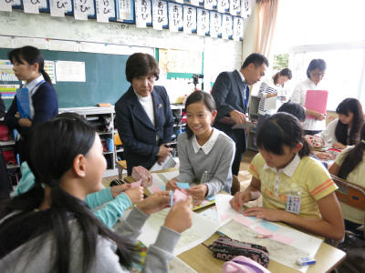 本日は、前久喜市立久喜北小学校長 山本千恵子先生をお迎えし、校内授業研究会を行いました。6年3組で国語科「名画の良さを伝える解説文を書き、「豊野小名画展」を開こう」の授業を行いました。子供たちは、鳥獣戯画の絵から、読み取ったことを、グループで交流し、自分の考えを深めていきました。とても生き生きとした子供たちの学びの姿が見られました。